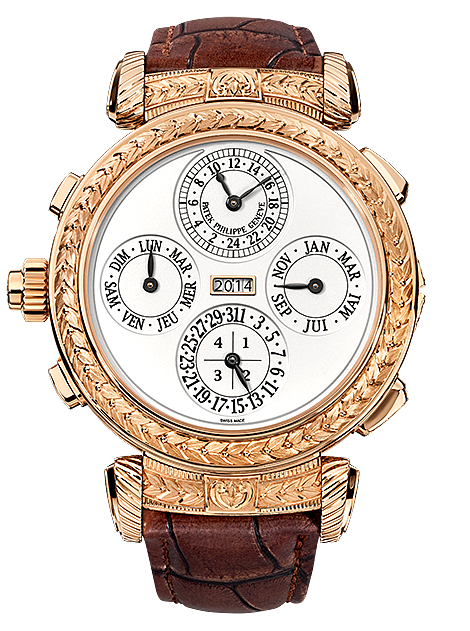 1366 Einzelteile. Limitiert auf 7 Exemplare. Herstellung 2014 20 Komplikationen:1.Grande Sonnerie (Großes Schlagwerk mit Selbstschlag) 2.Petite Sonnerie (Kleines Schlagwerk mit Selbstschlag) 3.Minutenrepetition 4.Schlagwerkmodusanzeige (Silence/Grande Sonnerie/Petite Sonnerie) 5.Alarm mit Zeitschlag 6.Datumsrepetition 7.Gangreserveanzeige des Gehwerks 8.Gangreserveanzeige des Schlagwerks 9.Schlagwerk-Isolationsanzeige 10.Zweite Zonenzeit 11.Tag-/Nacht-Anzeige zur zweiten Zonenzeit 12.Ewiger Kalender mit springenden Indikationen 13.Wochentagsanzeige 14.Monatsanzeige 15.Datumsanzeige (auf beiden Zifferblättern) 16.Schaltjahrzyklus 17.Vierstellige Jahresanzeige 18.24-Stundenanzeige mit Minutenzeiger 19.Mondphasenanzeige 20.Kronenpositionsanzeige (RAH)
