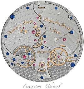 und Kloben angliert • Alle Titanteile angliert und mit Strichschliff "trait tirés" oder Rundschliff "satinage circulaire" • Schrauben hochglanzpoliert • Skelettierte Brücken und Kloben • Teilskelletierte Grundplatine • Grundplatine sandgeblasen "microbillage" |
