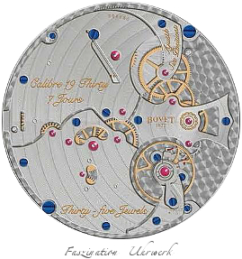 19"' ? mm (19"') 7-16 18.000 A/h (2.5 Hz) 32 Std. Schlüsselaufzug • Schweizer Anker, Échappement à ancre ligne droit • Flach- / Breguet-Spirale • Schrauben-Unruh (Mono- / Bimetallisch), 2-schenklig Billodes, Fabrique de montres de Georges Favre-Jacot & Cie. 1884 ? Ankerwerk, Savonnette • Uhren-Messing, gekörnt, vergoldet • Stunde • Minute • Kleine Sekunde auf "6" • Zeigerstellung durch Hebel auf "4" • Malteserkreuz-Stellung • Zwillings-Kloben • Wolfsverzahntes Gesperr • Lang-Anker • Rücker zur Feinregulierung • Brücken und Kloben angliert • Gravierter Unruhkloben Der Name Billodes kam vom Le Locler Stadtteil "Les Billodes". Die Firma "Billodes, Fabrique de montres de Georges Favre-Jacot & Cie." ist die heutige Firma "Zenith", wobei dieser Markenname in 1897 registriert wurde. Dieses Billodes-Kaliber gab es in den Grössen 18"', 19"', 20"' und 21"'. |